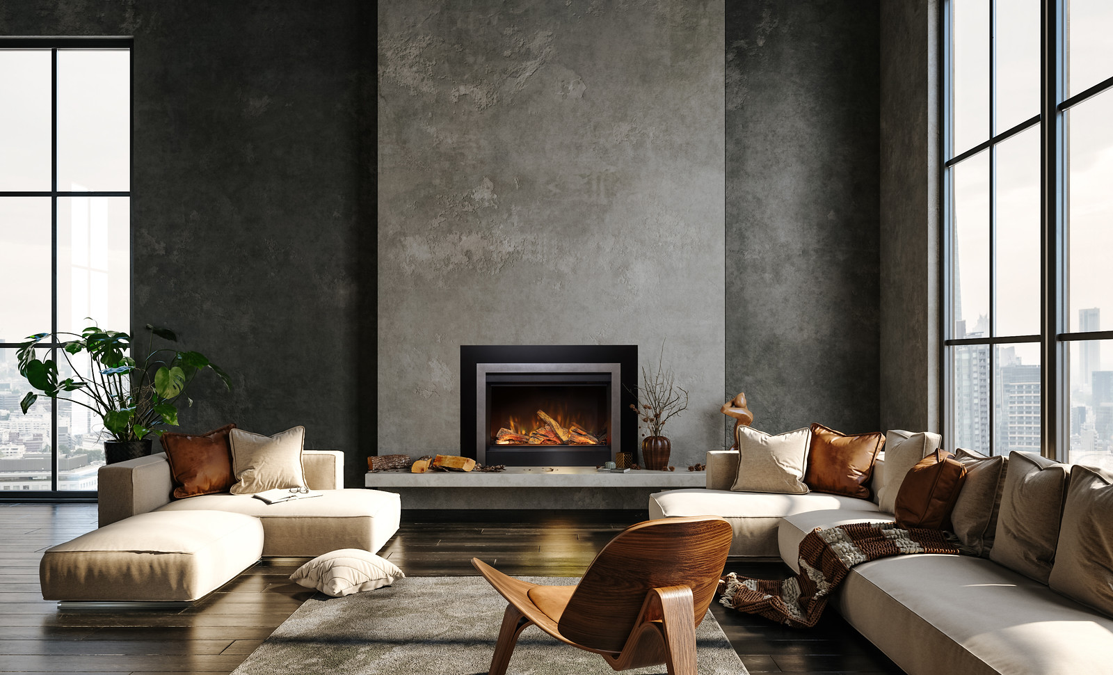 The GE3 is a flexible alternative to gas or wood but only requires a simple plug-in installation. Fire up the heater with your remote or mobile app to control the lighting, flame effects, and other features.